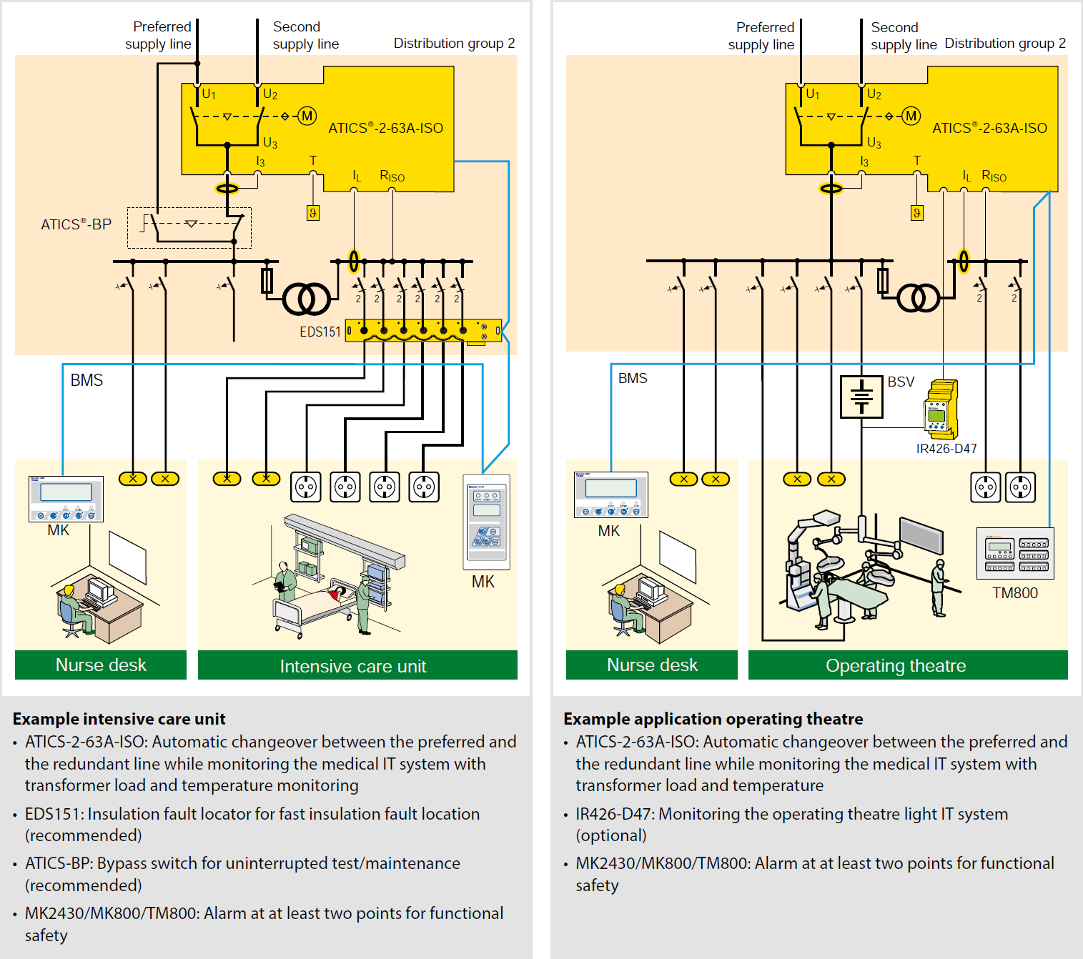 Conectorii la toate cablurile de legatura - in combinatie cu comutatorul de bypass optional - permit ca releele ATICS® sa fie testate sau inlocuite în timpul service-ului fara intreruperea alimentarii cu energie. ATICS® sporeste considerabil nivelul de siguranta in special in unitatile de terapie intensiva si in salile de operatii.