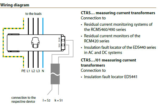 Transformatoarele de masura curent cu miez divizat din seria CTAS, foarte sensibile, in combinatie cu releele de monitorizare si releele de evaluare curent rezidual din seria RCM sau RCMS transforma curentii AC intr-un semnal de masurare evaluabil.